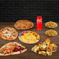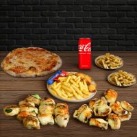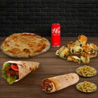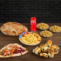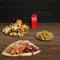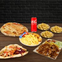 Familienmix für 4 Personen aus Adana Kebap, mariniertem Lammspießen, gegrillten Frikadellen, zarten Rinderspießen, Chicken Wings, würzigen Champignon und Hähnchenspießen. Abgerundet mit einer großzügigen Auswahl hausgemachter Dips