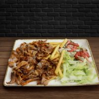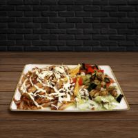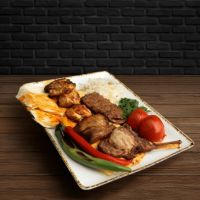 Ein spezieller Mix für drei Personen aus Chicken Wings, Adana Kebap, mariniertem Lammspieß, Hähnchenspieß, türkischer Knoblauchwurst, würzigen Champignons und ein Mix aus vier hausgemachten Dips
